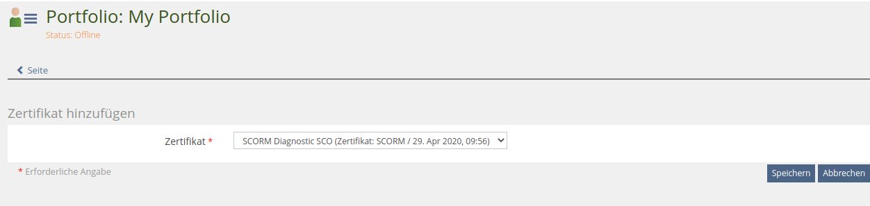 Instead of offering two options (like shown below in the ILIAS 6 screenshots) to add a new certificate to a portfolio page ...