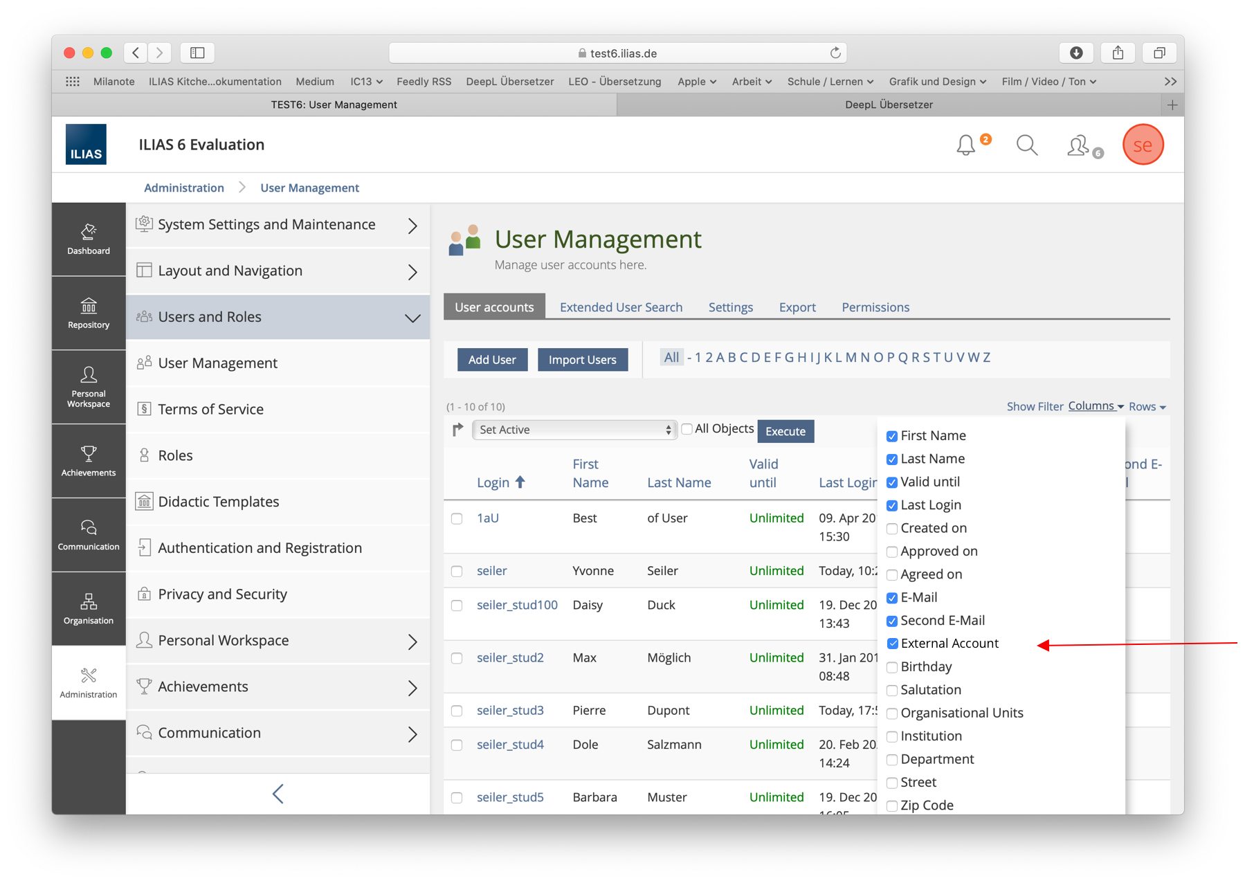 Currently the field "External Account" cannot be displayed in the user account table. This is desirable to get a faster overview of account data. This is a field that contains unique information that is important for identifying users.