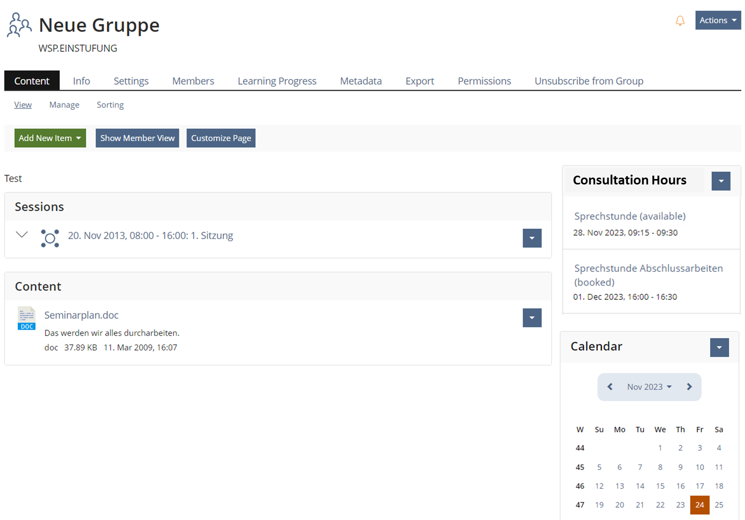 In Courses and Groups a dedicated secondary panel "Consultation Hour" would allow a more prominent presentation of consultation hours.