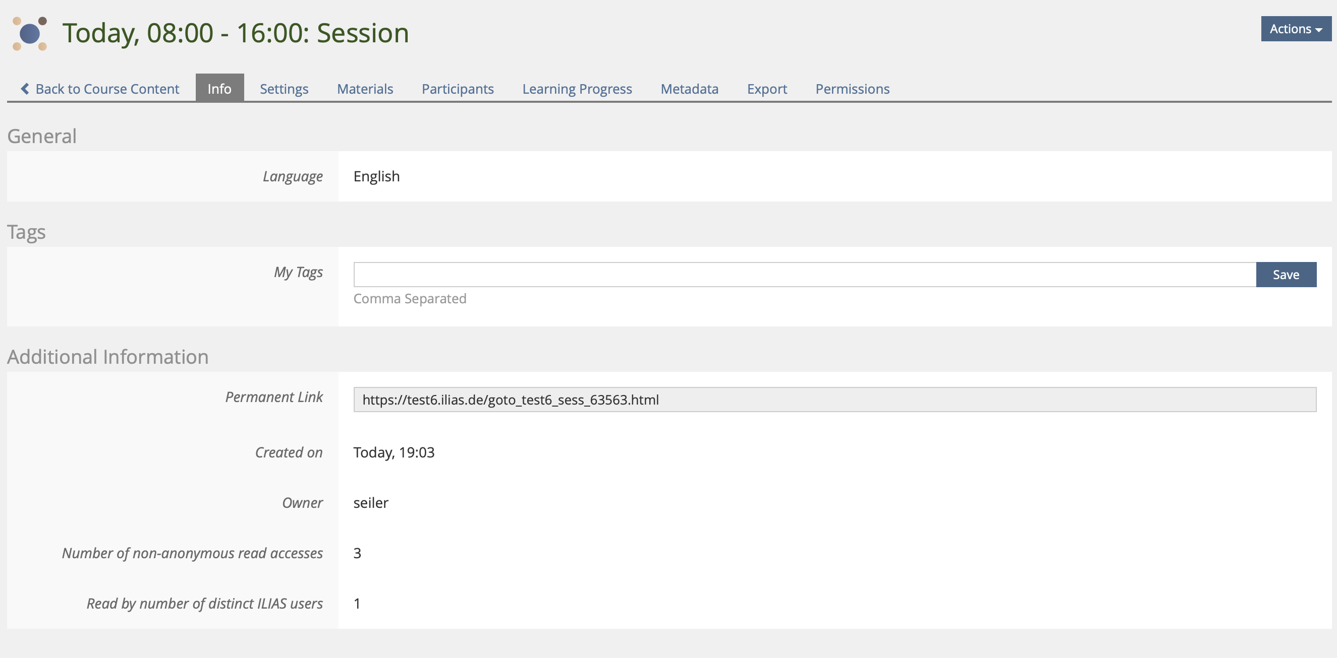 - Action menu: No action for "Attend" session available.
