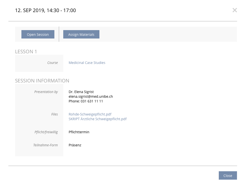 If you click on "Assign Materials", you will be taken directly to the "Materials" tab of the respective session.