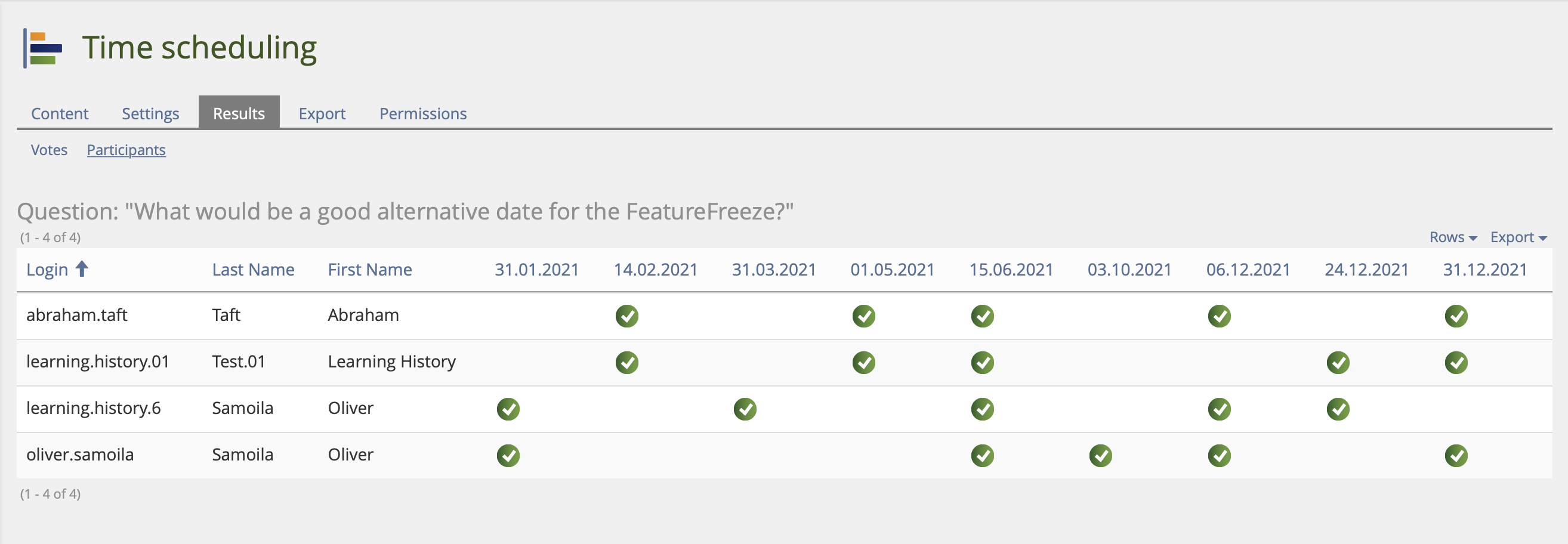 Target: I would like to do the time scheduling with ILIAS - that is what we work with before and after the coordination.