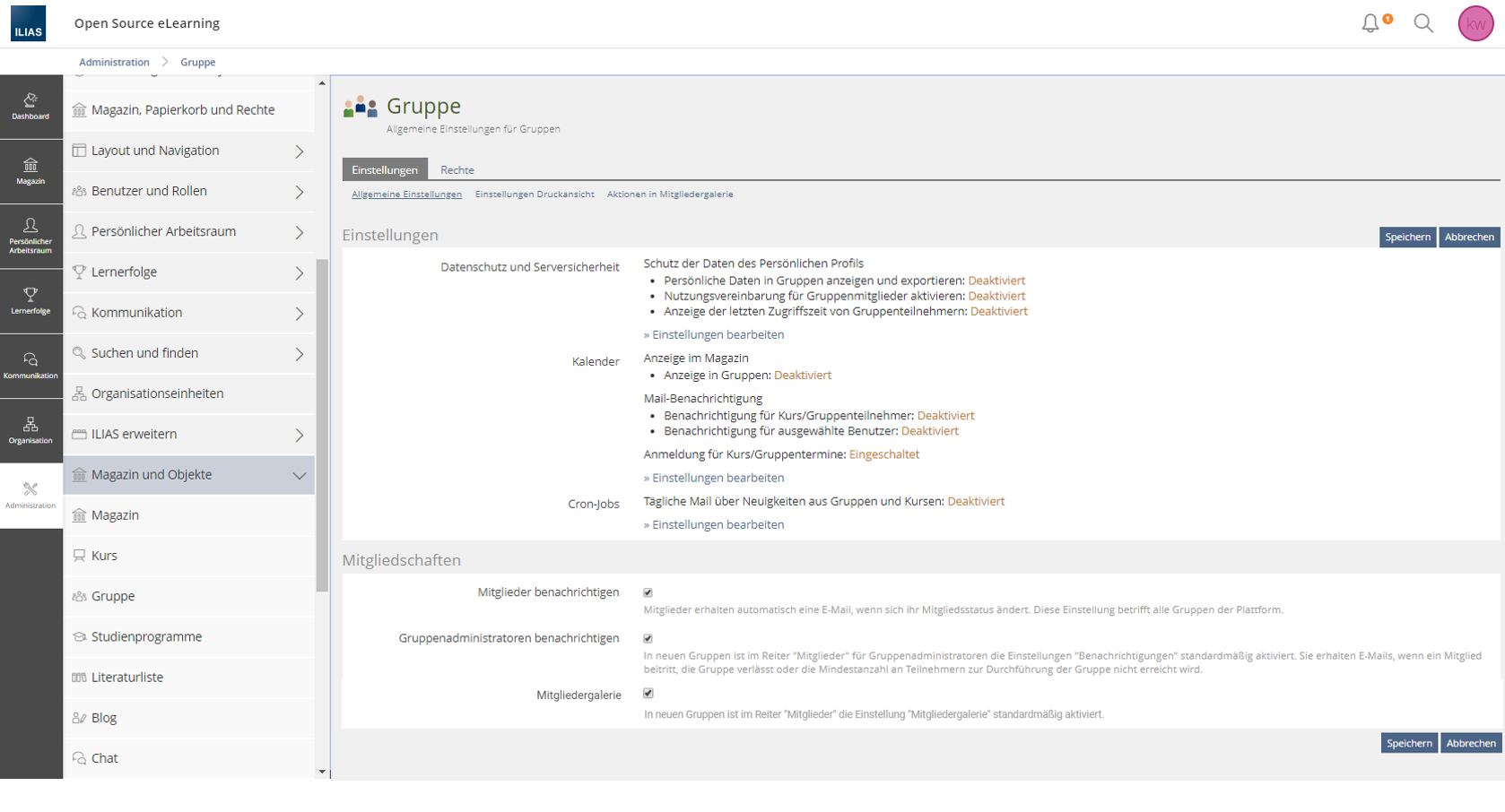 Administration >> Repository and Objects >> Group >> Tab: Settings >> Subtab: General Settings