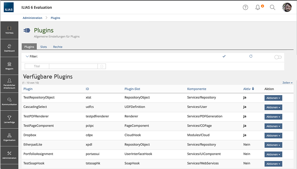 - Plug Ins (in Administration » Extending ILIAS)