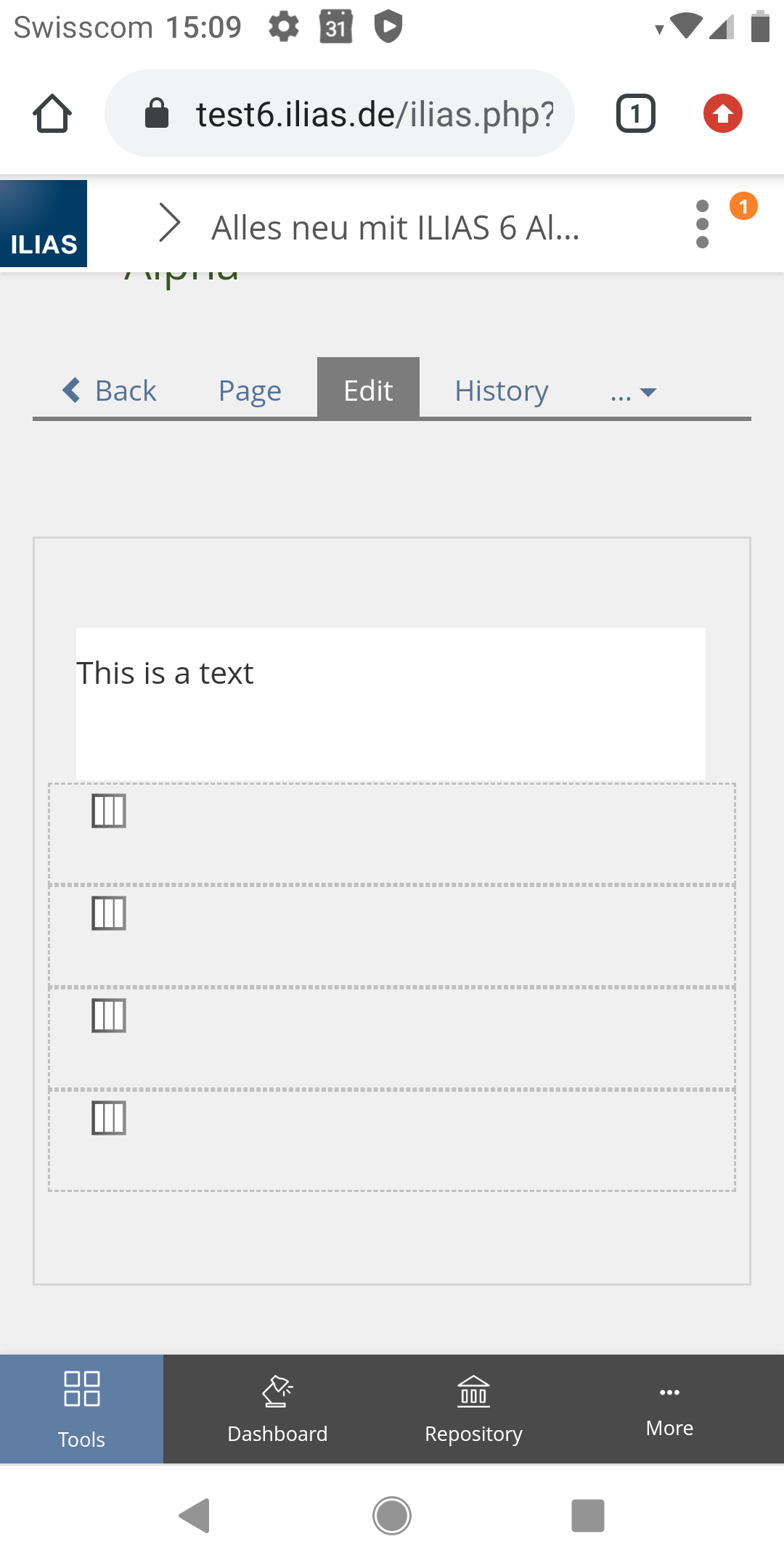 This variant is supported by the fact that properties and contents of other page elements are also changed in the slate (e.g. media). This behaviour is used on small screens where there is a text input field in the page editor and where the slate cannot be displayed parallel to the content (e.g. datatables).