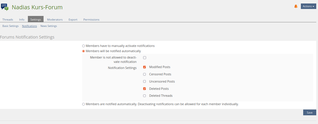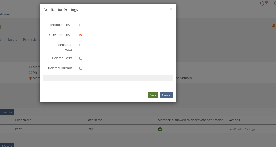 Activate/Deactivate notifications of deleted, censored and edited postings