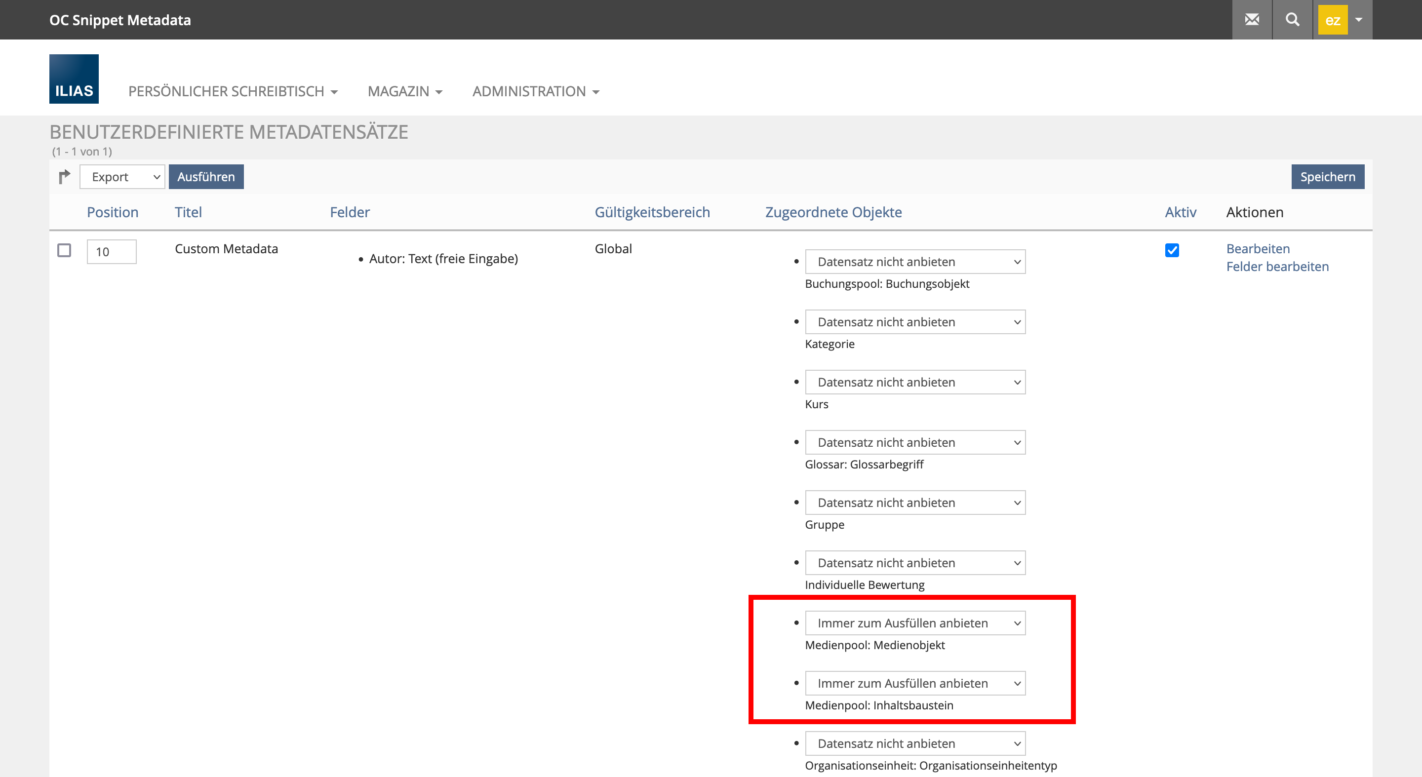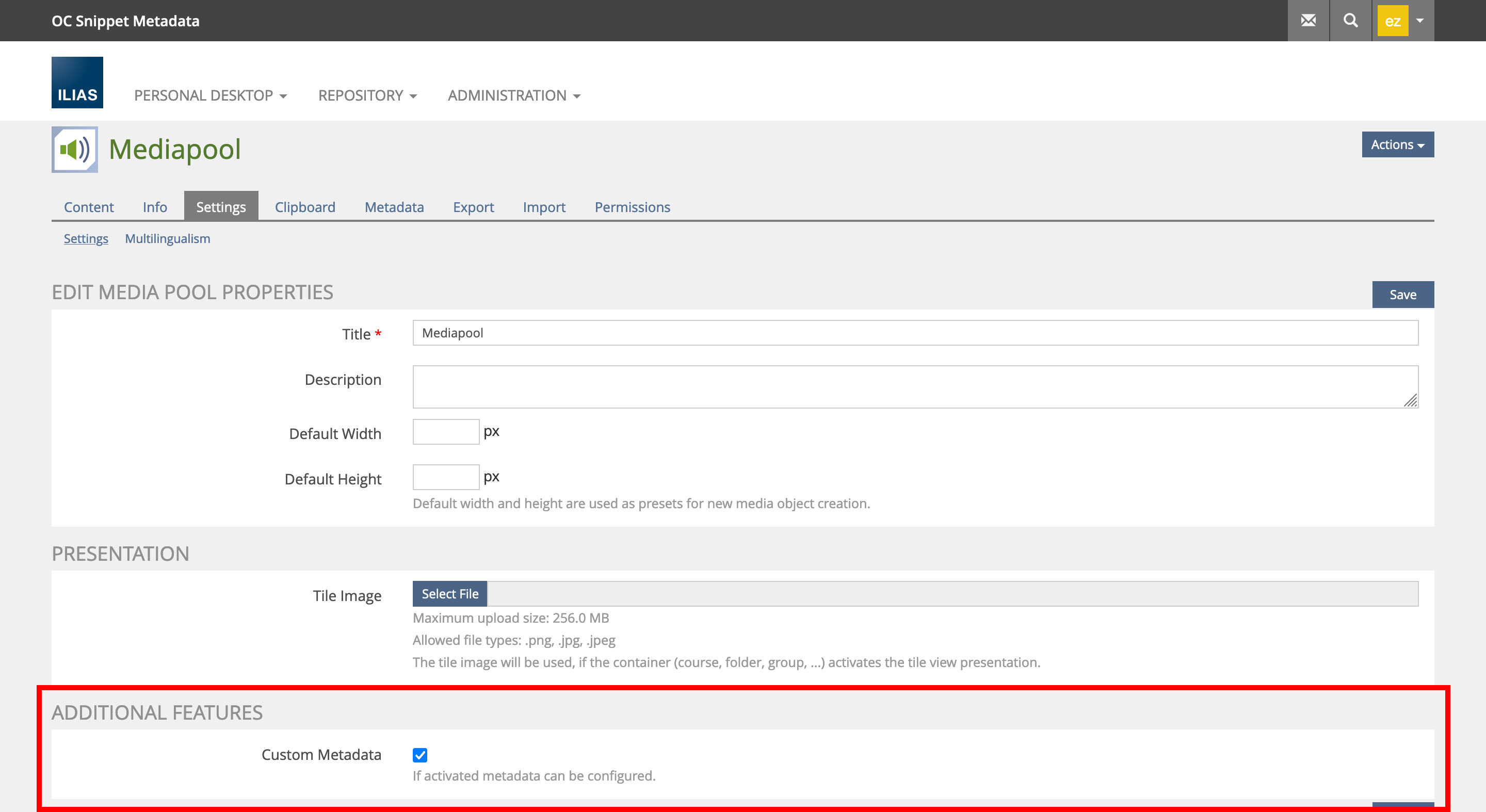 - 24674: Benutzerdefinierten Metadaten in einem konkreten Medienpool aktivieren