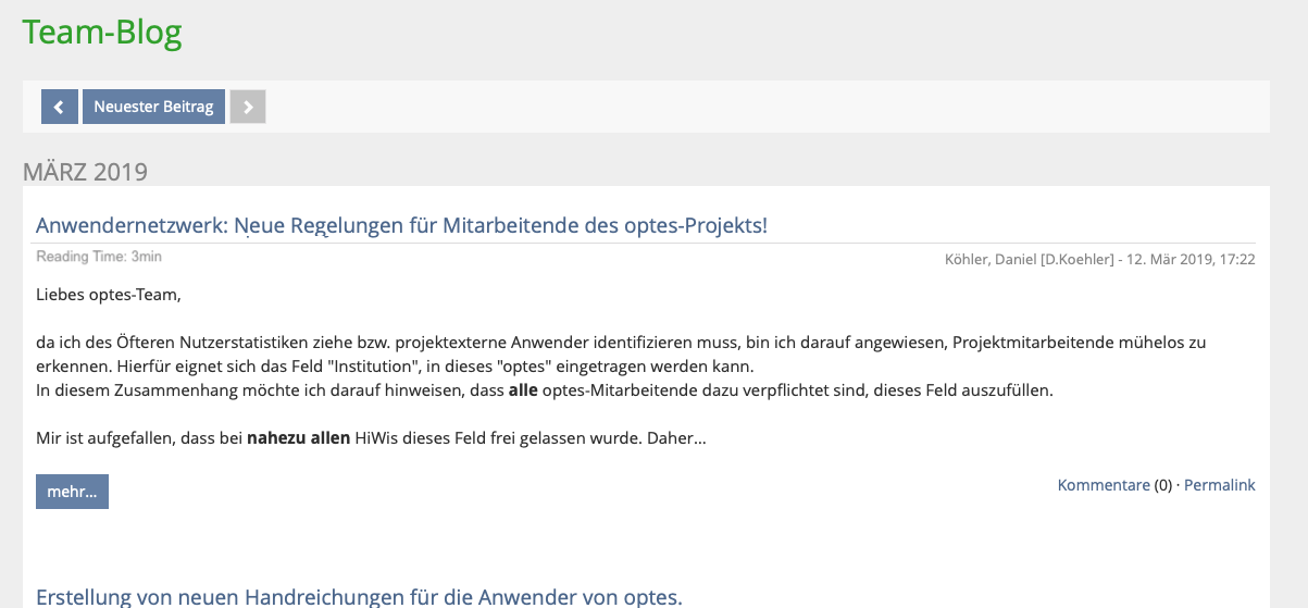 JourFixe, ILIAS [jourfixe], 08 APR 2019 : We accept this feature request and schedule it for 6.0. ILIAS LM and blogs should use a central transformation service to estimate the needed time to read the text. This service still needs to be developed. To avoid a misunderstanding of the presented reading time, the labe used should be "Estimated reading time" to show that this is just an estimation. The estimated reading time is not the same as the metadata "Typical Learning Time" from the LOM metadata set. Language dependency is not needed. If the used language cannot be estimated by the service a notice "Cannot be estimated" shall be displayed. Settings to display "Estimated Reading Time" should be available per object (in Settings) and in Administration » Blogs (for blogs) and in Administration » Learning Modules for ILIAS LM. Default in Administration should be "not activated".