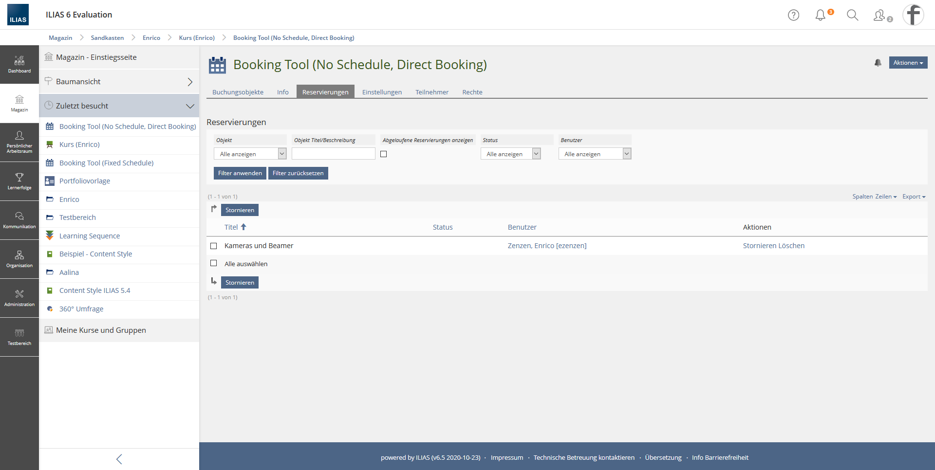 This tab is used to make reservations. After a booking object has been reserved, all reservations are displayed in the "Reservations"-tab. This is confusing for the users. Users usually look for information about booked objects/reservations in the Reservations tab.