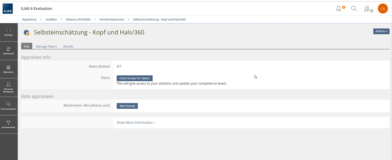 - They land in the Info tab where they can close the survey for raters they have not even added yet.