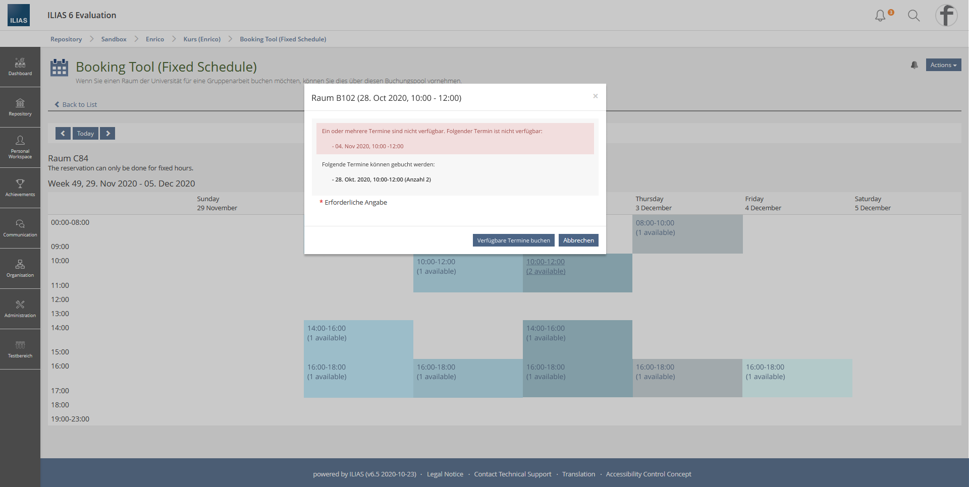 JourFixe, ILIAS [jourfixe], 21 AUG 2023: We fully agree with the maintainer's suggestion and accept the change of the request to only show the modal when a booking can't be done.