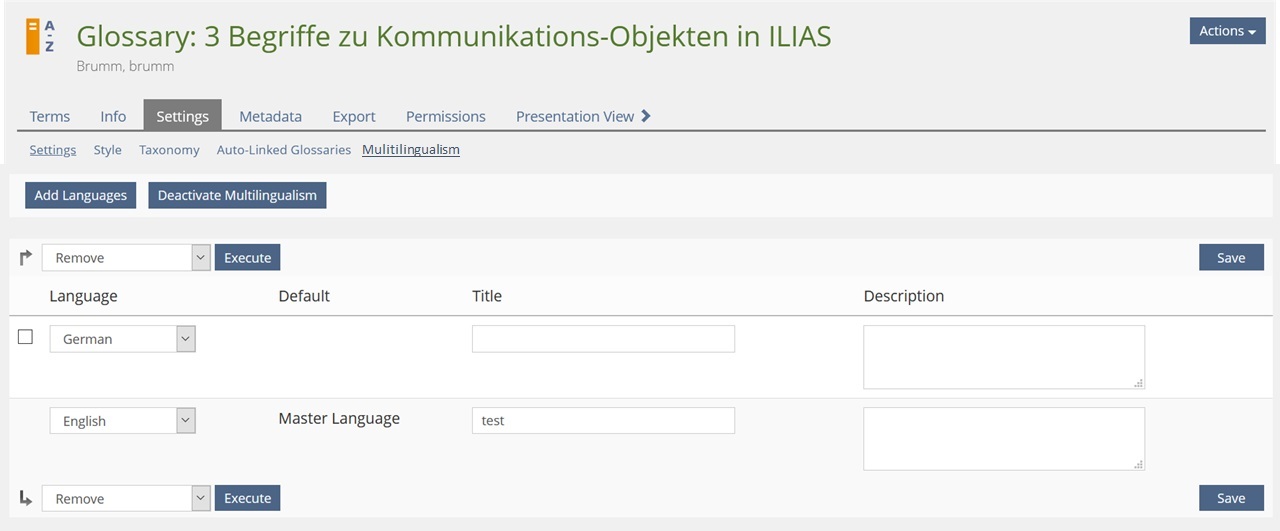 The handling of multilinguality in glossaries is very different from learning modules. In glossaries an additional term has to be added.