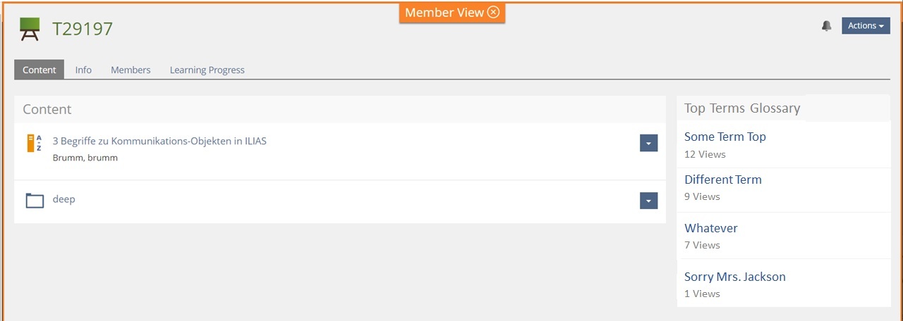 Zugriffsstatistiken bei den Begriffen, damit man momentane Top Begriffe identifizieren kann oder sogar eine automatische Erstellung von den Top Begriffen, die man dann wiederum irgendwo im Kurs platzieren kann.