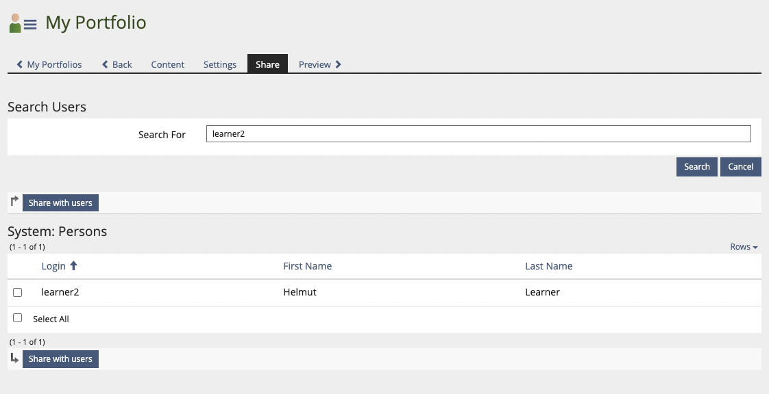 Generally students experience sharing processes of portfolios as difficult and bewildering. Especially students become confused during/after sharing their Portfolios since they are missing a final confirmation, that their sharing was successfull. In many cases creating a portfolio and sharing it with lecturers in a specific time period is mandatory, therefore students want and need to be 100% sure about a successfull sharing process. Although students have the chance to look up sharings with others on each of their portfolios, experience shows that they rarely do that and tend to contact lecturers directly via mail to doublecheck if sharing was successful which should be avoided.