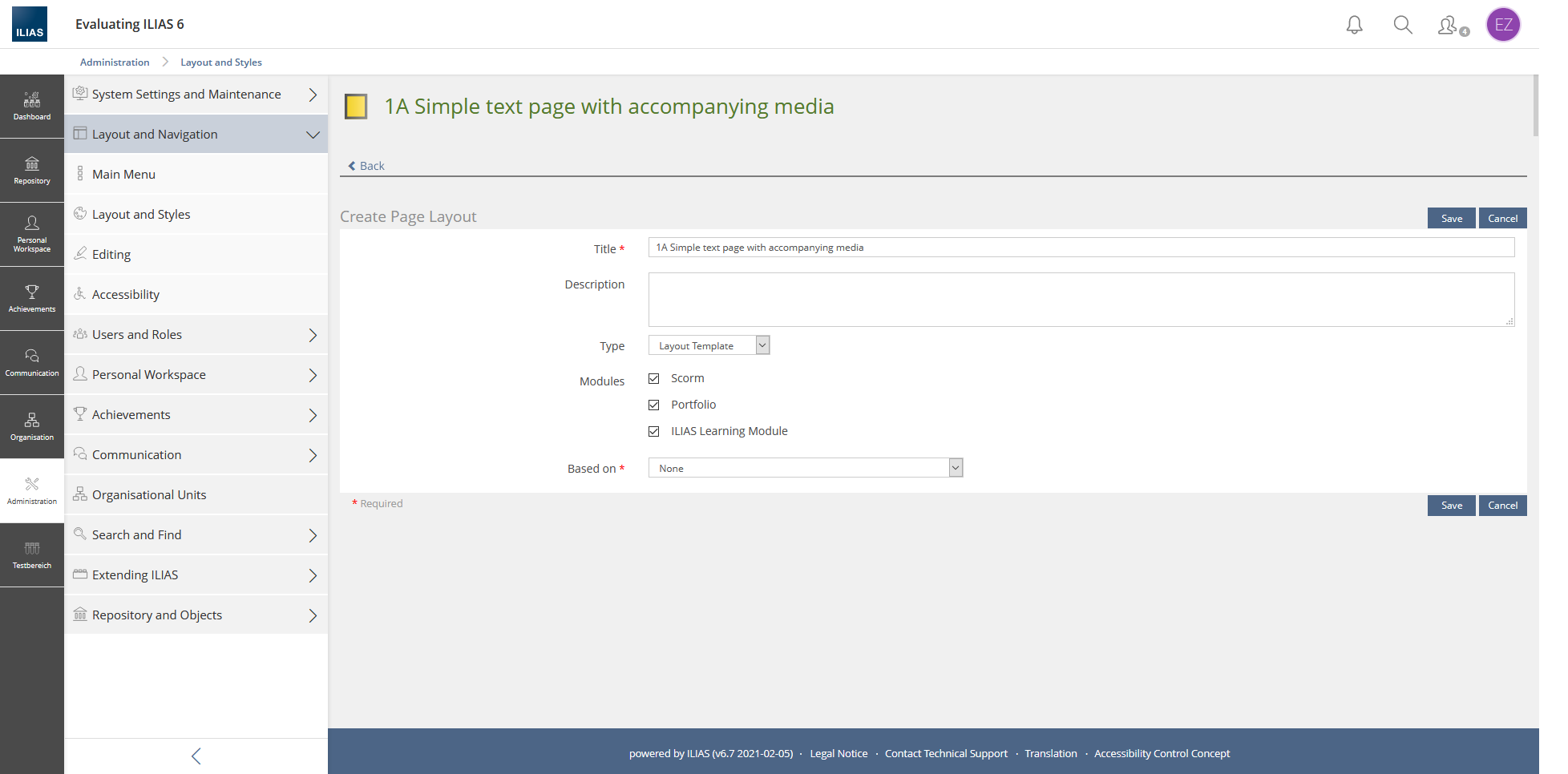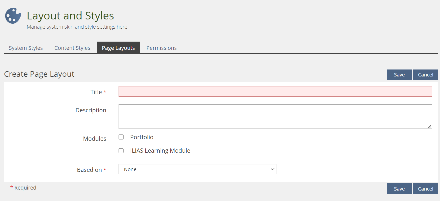 Page Editor » Page Template Administration