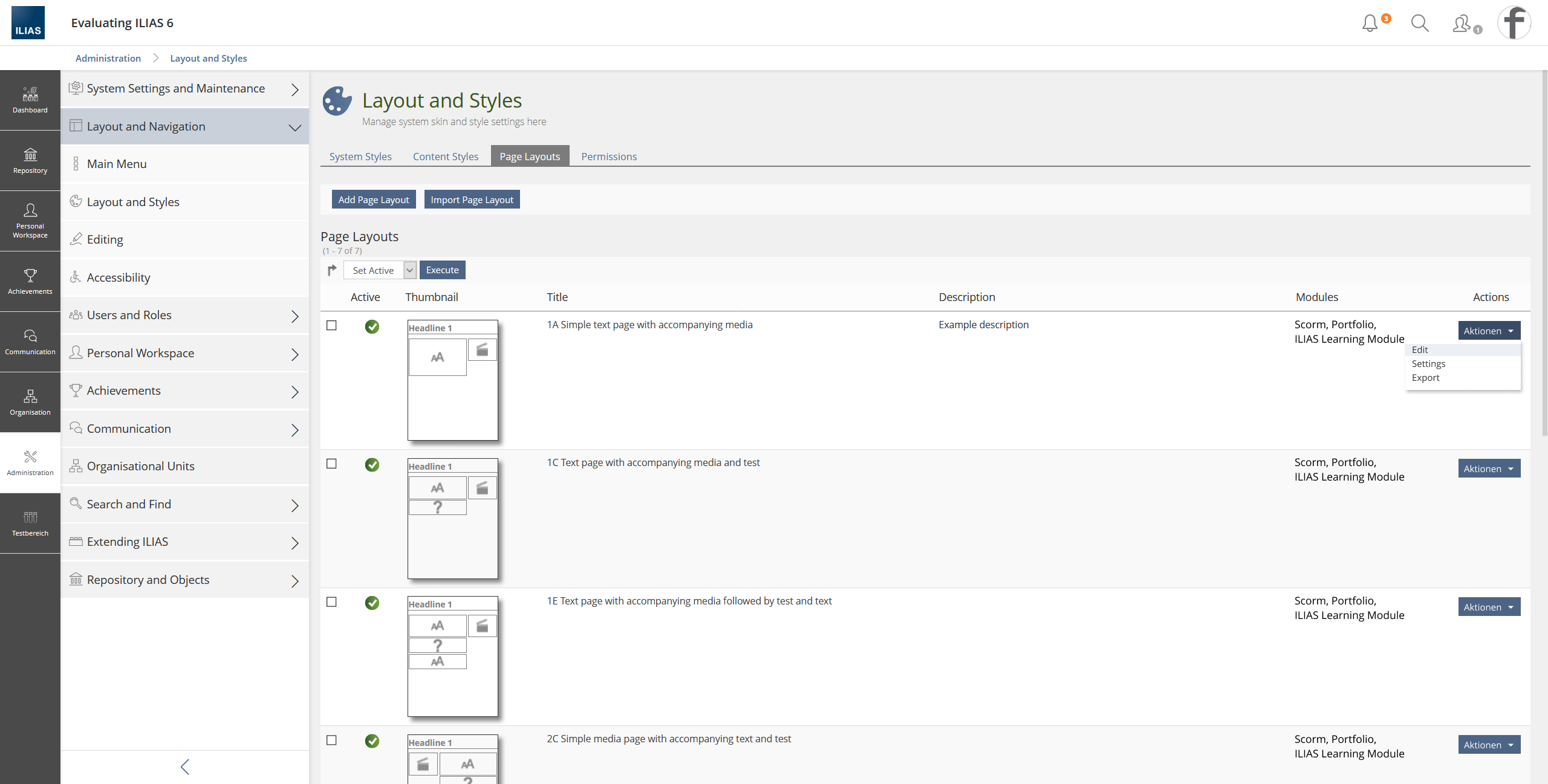 Editing, exporting and availability of Page Templates