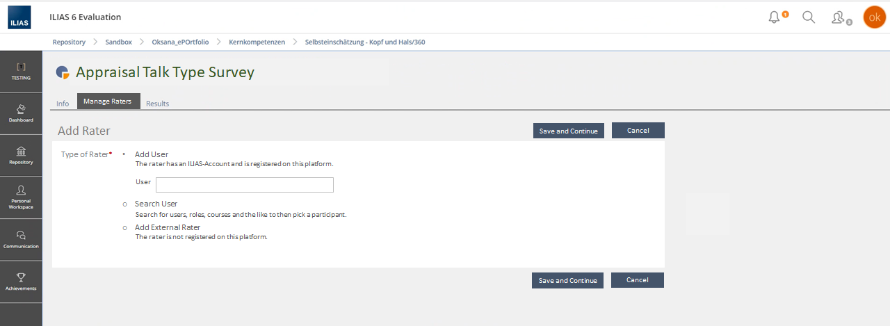 - Selecting or searching a type of rater and adding a rater