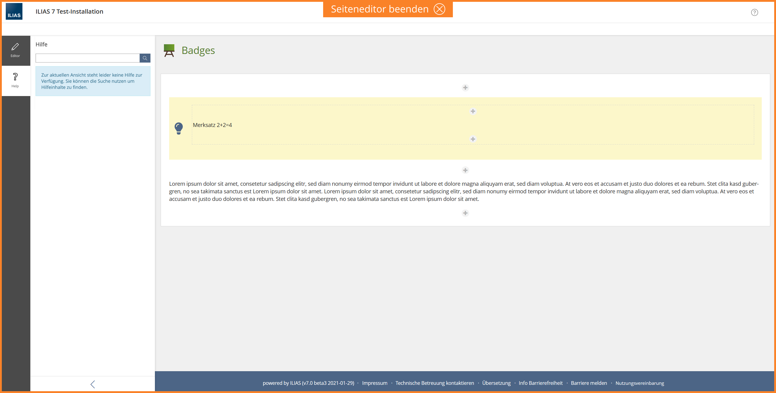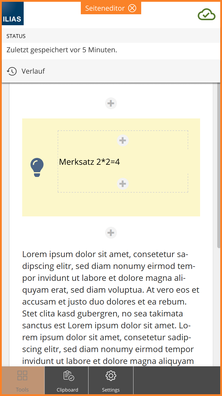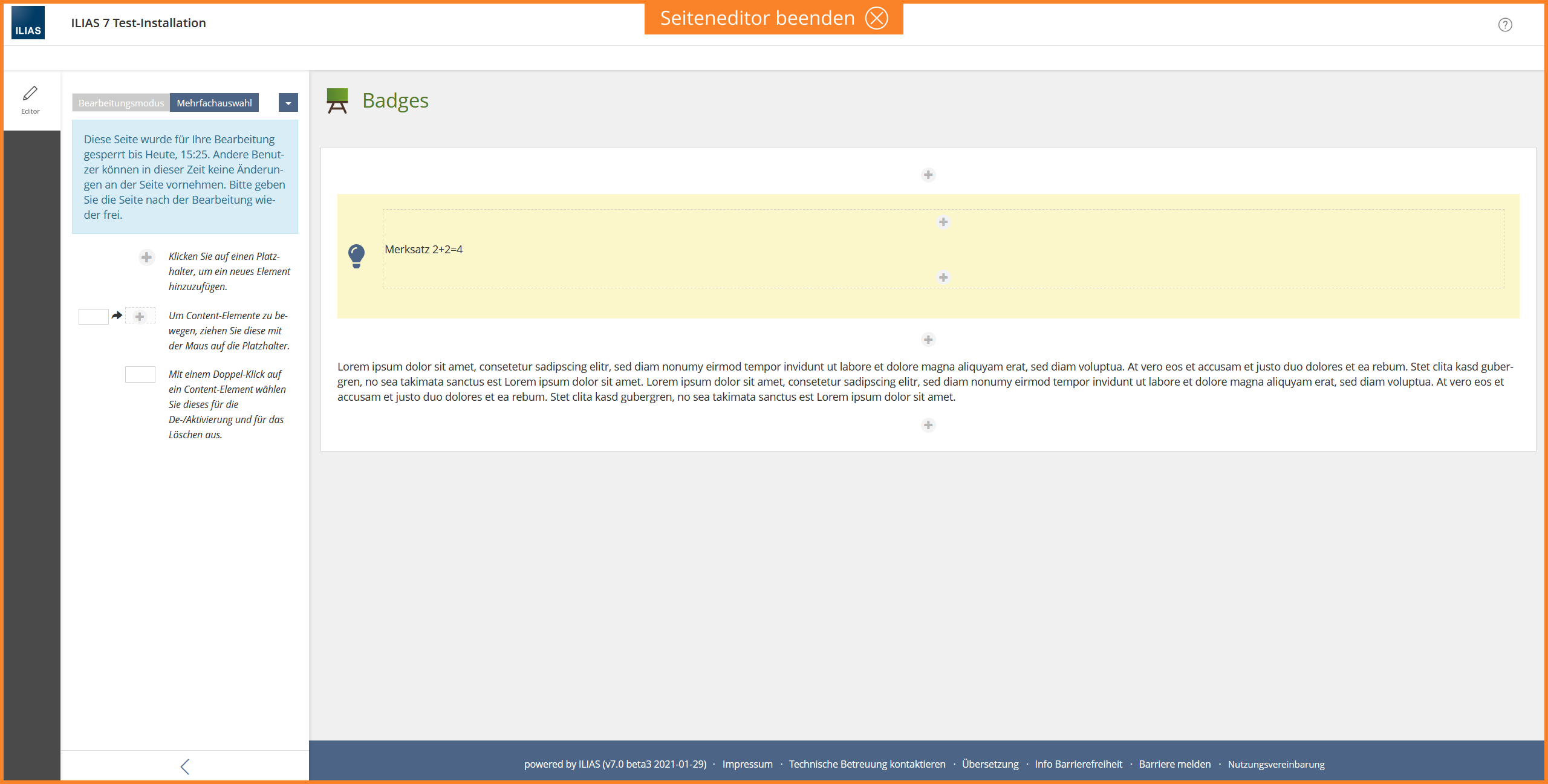 Since the Page Layout Revision, the ILIAS page editor is also displayed in the Tools Slate. The experience of ILIAS 6 shows that this representation is associated with some difficulties.
