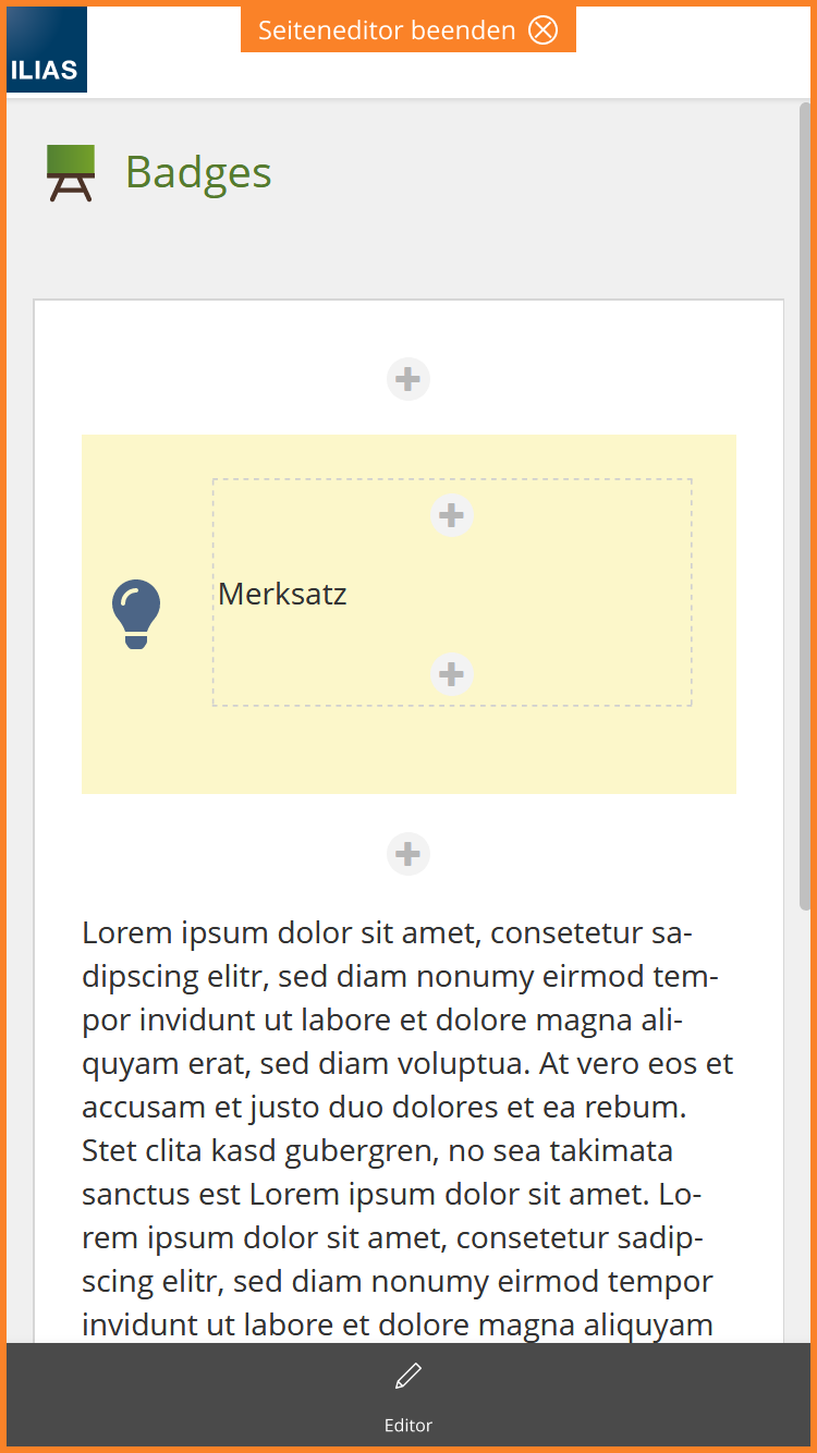 - Editor Mode Demo (Mobil Device): https://www.figma.com/proto/0twPZQkzuoGuYKXdaEah4w/Page-Editor-as-Modus-ILIAS-8-mobil?node-id=102%3A828&scaling=scale-down