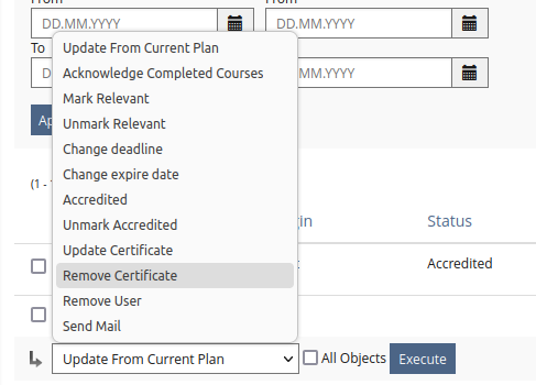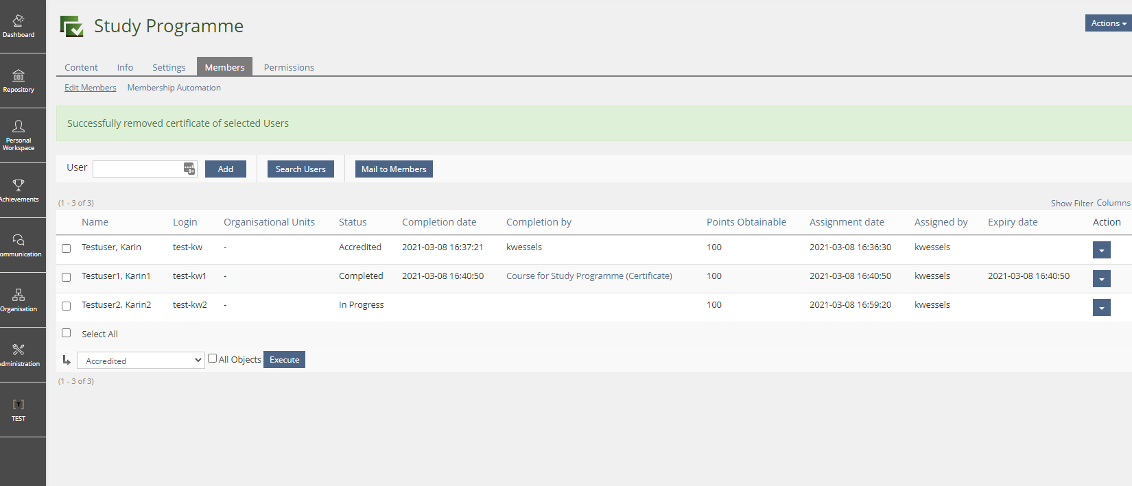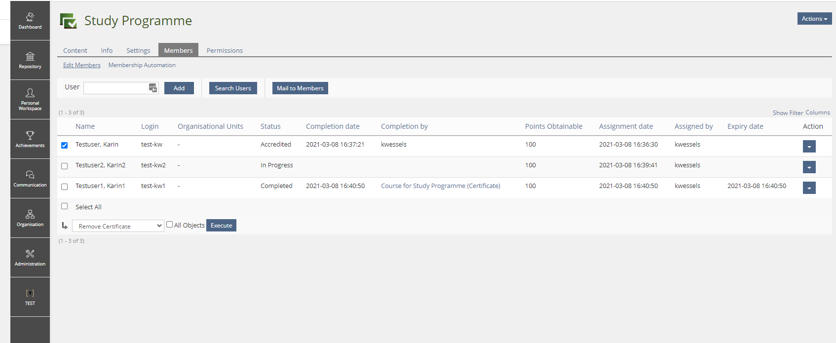 Study Programme: New Action ’Remove Certificate’ for Members Tab