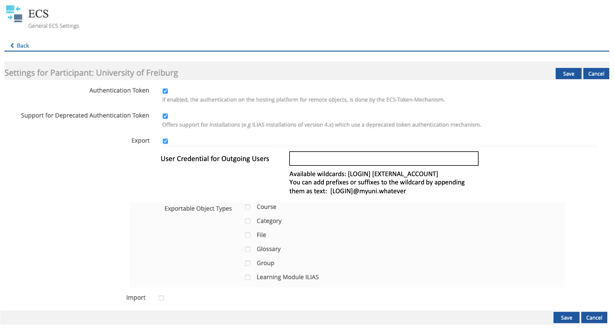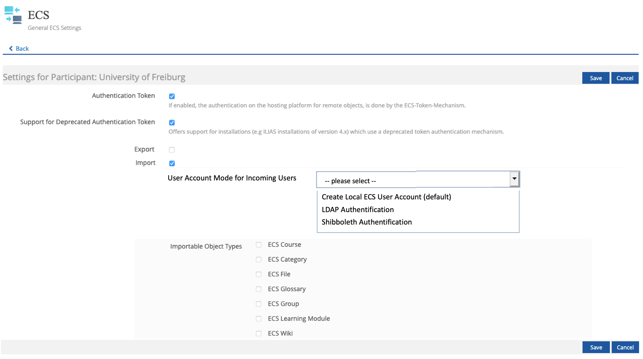- The ECS participant settings of both platforms have been setup to trust each other and to use Shibboleth-auth accounts with EPPN instead of local ECS accounts.