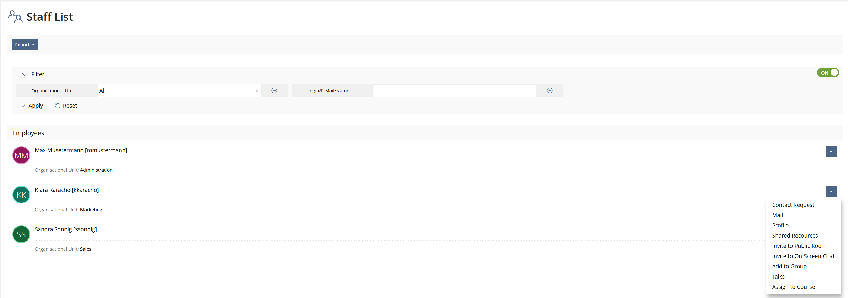 In the Organisation > Staff List superiors should have the opportunity to enrol their employees.