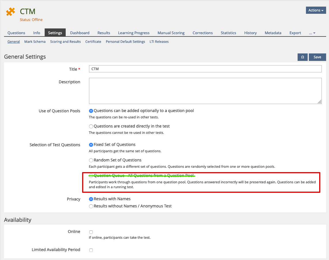 With ILIAS 8, the ability to create new CTM tests is to be removed. Due to the deep code integration of the CTM, only the functions for this will be deactivated in a first step.