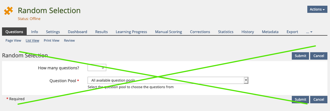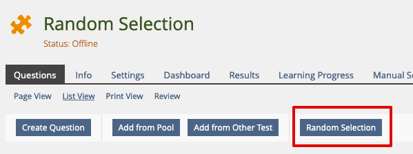 To reduce the complexity of the ILIAS test, we propose to remove the "Random Selection" button in the list view of the ILIAS test.