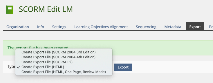 The main goal for the SCORM editor is to provide an easy way to collaborate on SCORM content. However the SCORM editor provides a feature to export to HTML, too. But this is almost unmaintained, does not have any test cases and even uses framesets(!). I am pretty sure there is not one left using this, since it is also quite buggy.