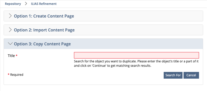 JourFixe, ILIAS [jourfixe], 06 FEB 2023: We highly appreciate this suggestion and abandon the function with to copy on the create dialogue for ILIAS 9.