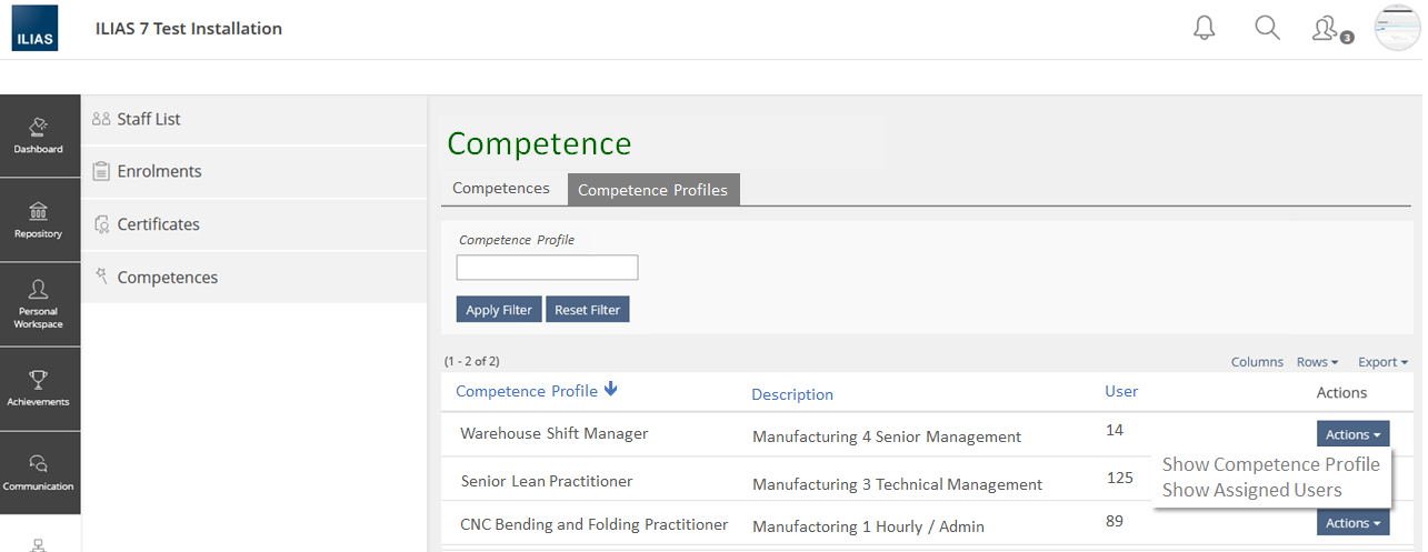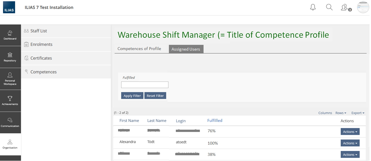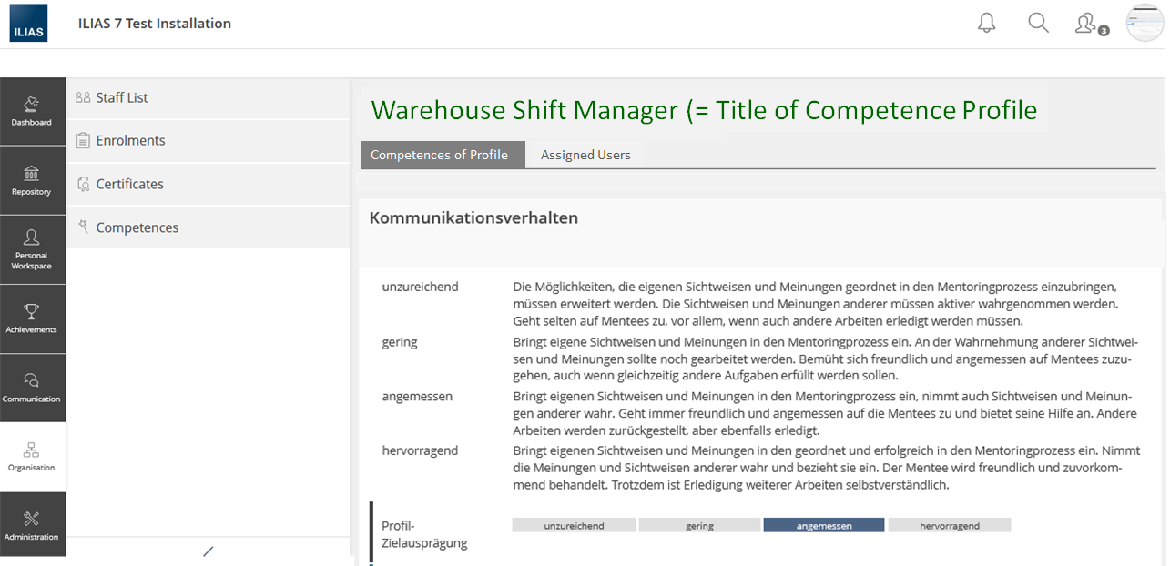- Competence Profiles are assigned to roles or individual users centrally in the Administration. (already works)