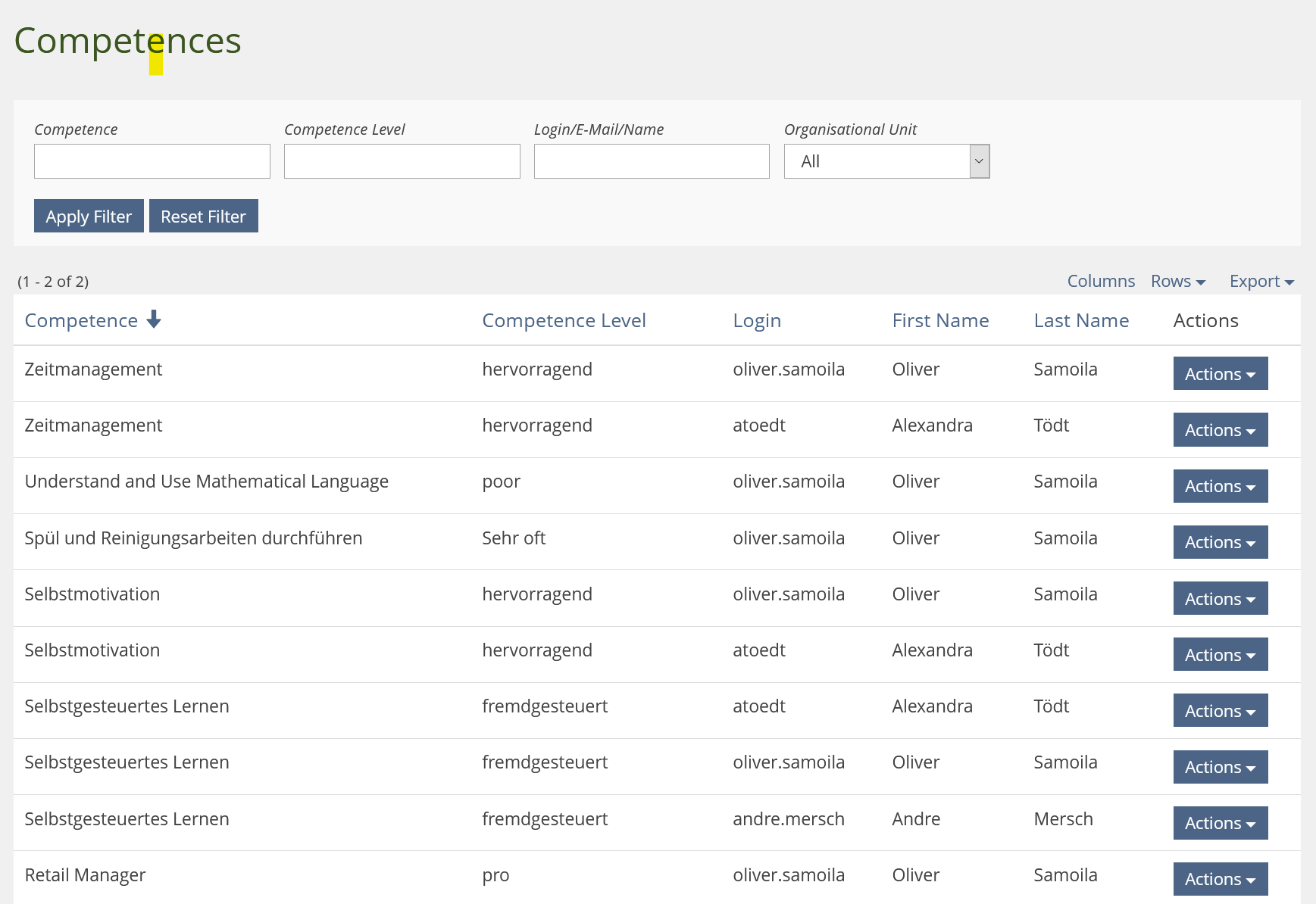 - Eventuell generelle Ansicht für Superiors/Admins ohne Competence Recors auch als Übersicht für die Administration von Kompetenzprofilen
