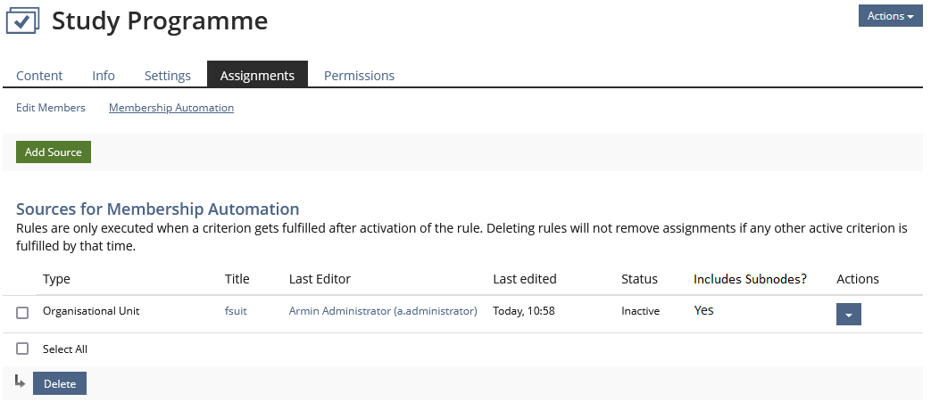 Study Programme: Automatically Add Users from Organizational Unit Subtree
