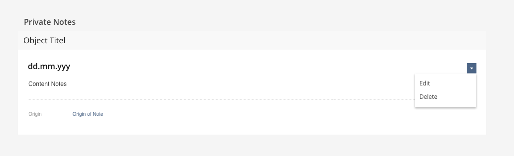 Currently, notes can be added directly from the personal notes. To do this, an object must first be selected, then a new note can be added to this object.