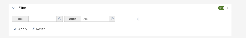 If an object has been selected via the filter, the toolbar is extended by the Add Note entry. If the user clicks on the button, a modal will open and a note can be added to the corresponding object.