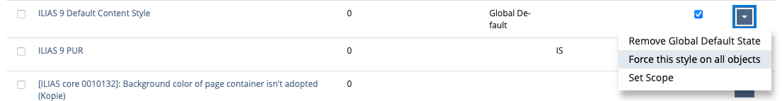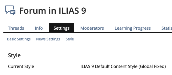 - The subtab "Style" is not hidden when no changes can be made. Instead, it shows the locked style as conventional in ILIAS.