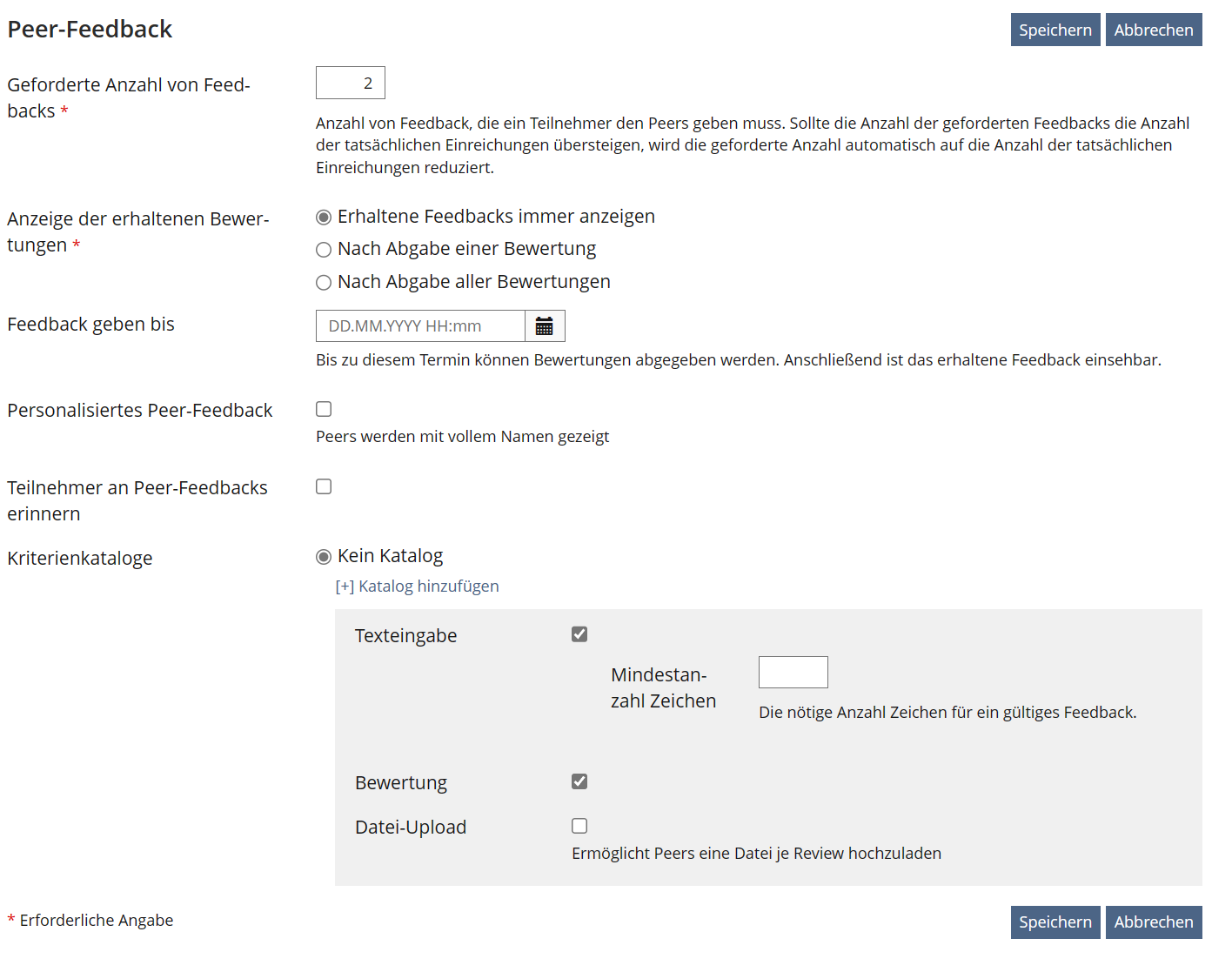 - Received peer feedback is supposed to be shown directly, if no peer feedback deadline has been set.