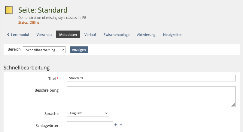 Kunkel, Matthias [mkunkel], 09 AUG 2021: In some contextes where the ILIAS page editor is used, authors can set the metadata "Language" for a page (e.g. ILIAS LM). But this depends from the support of Metadata in each component. But if the current feature request should be realised, language information has to be made available in the Metadata service as well. And I guess, not only one language should be made available to choose (as it is now).