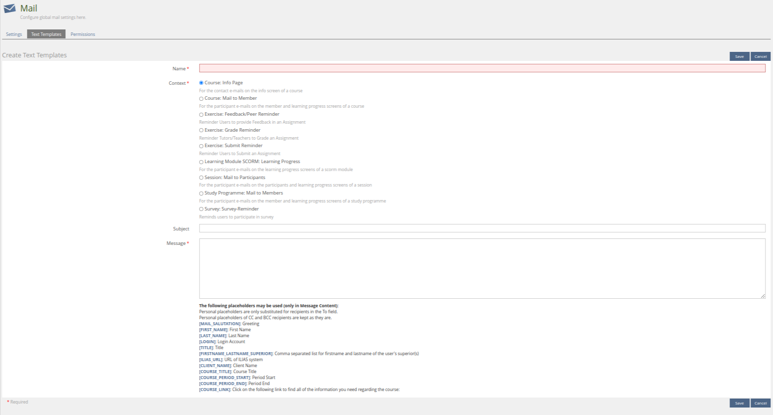 However, in the main scene where placeholders are used ("Administration > Mail > Text Templates"), no such option exists at all.