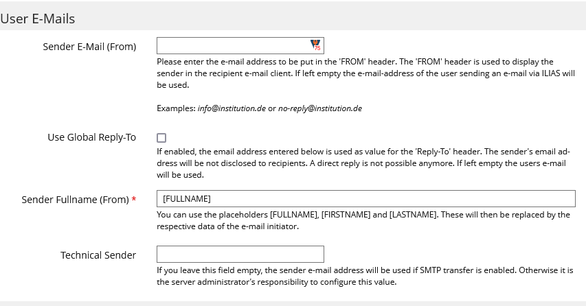 - if the field is left empty ILIAS must use the user accounts email for the from header,