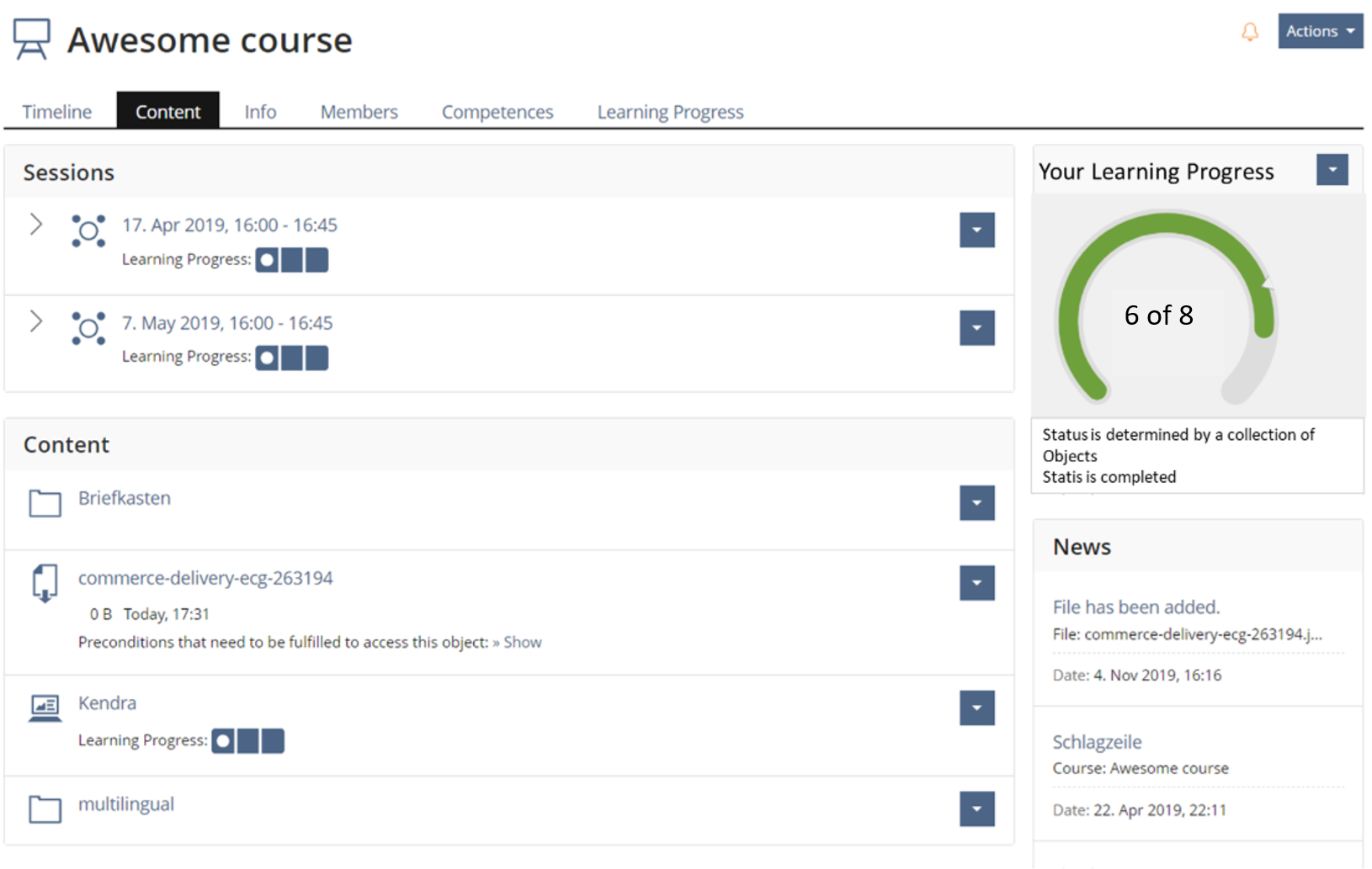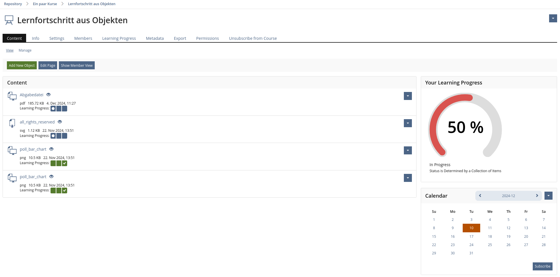 Present User‘s Learning Progress as Secondary Panel in Course/Group/Folder