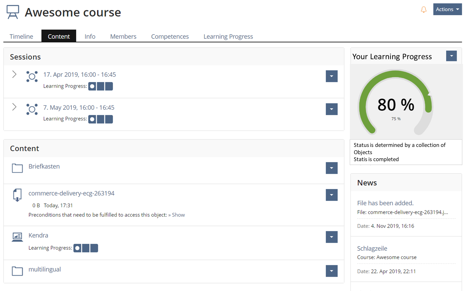 - Status is Determined by a Collection of Items: Each object determining the learning progress contributes the same percentatge.