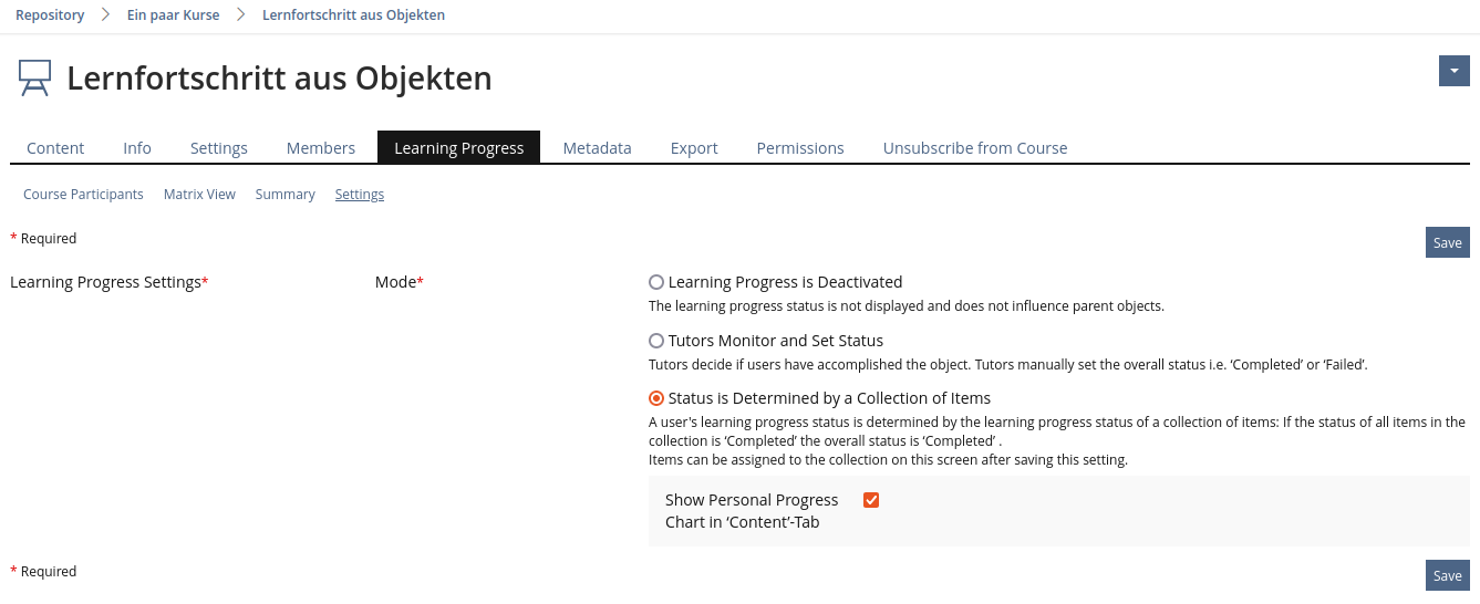 The Learning Progress settings were moved to KS not only in Courses/Groups/Folders, but every object.