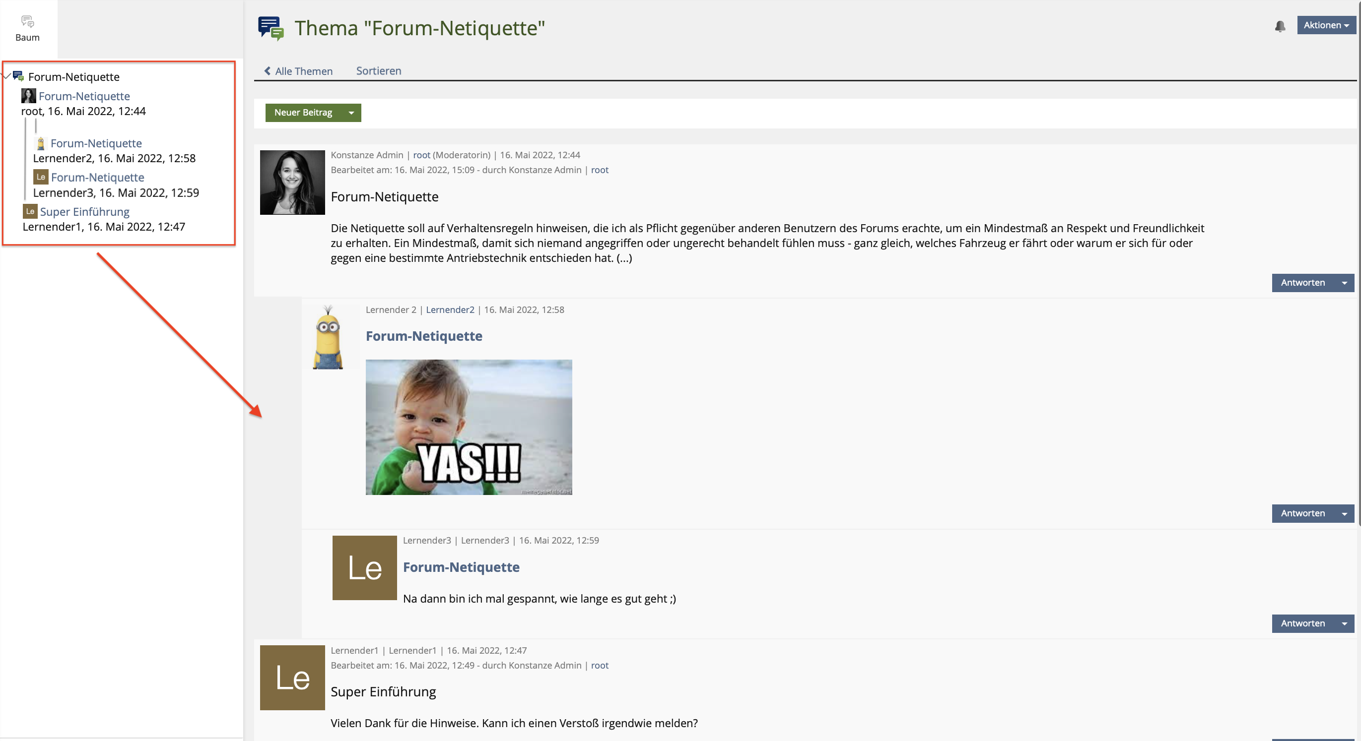 - Suggestion: New Sorting-Tab to clean up the view. "by reply/by date" and "Latest posting at the bottom" as Links below
