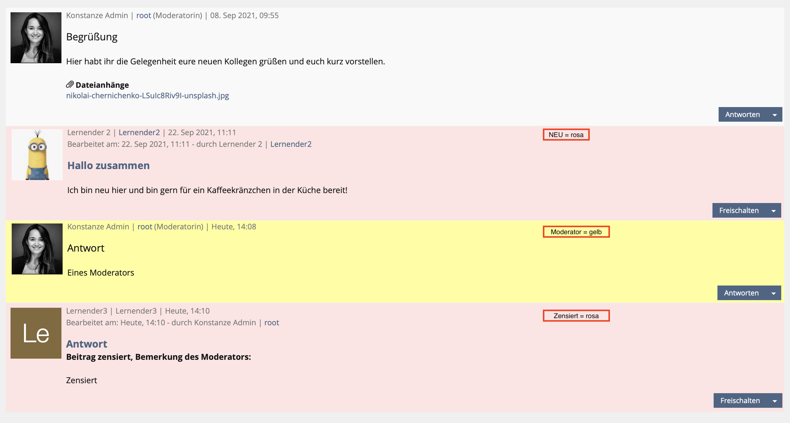 - the detection of new replies and moderation posts by different Color+Marker