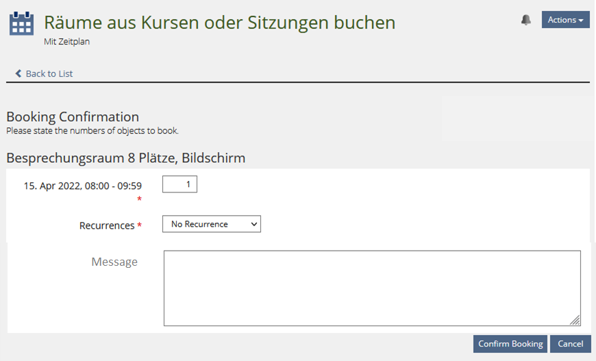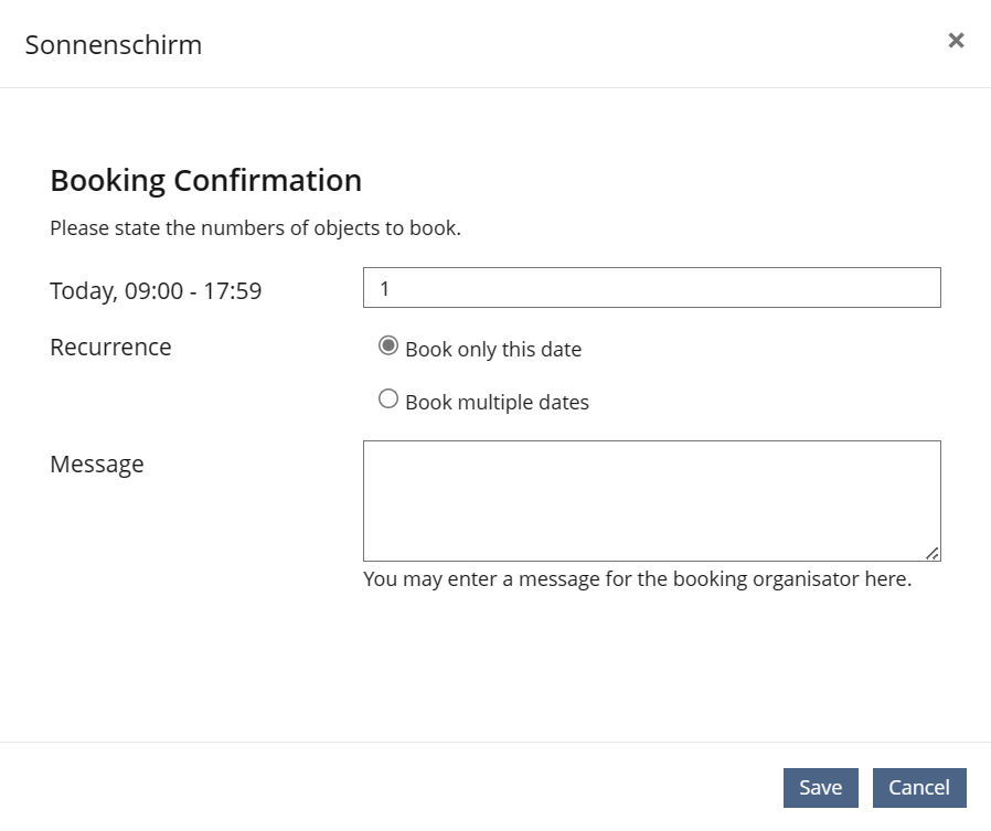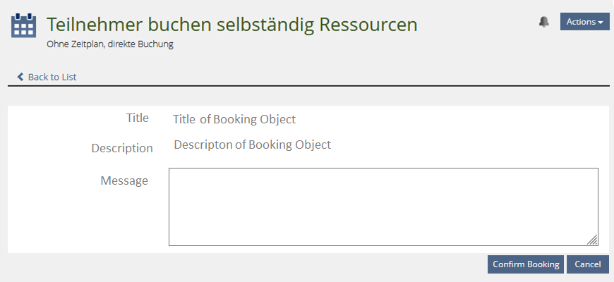 - Booking Pool > Book Object > Confirmation dialogue of booking