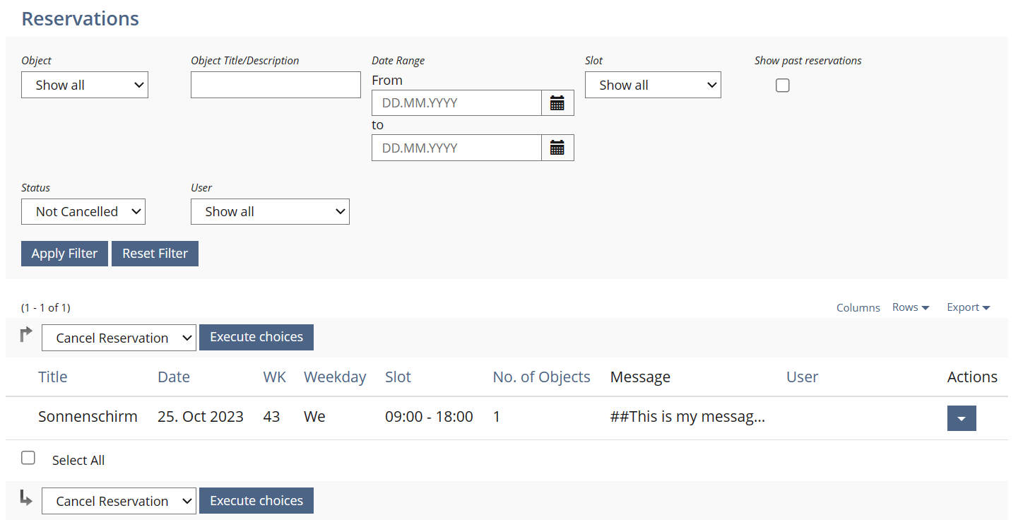 - The comment can be entered when booking an object.