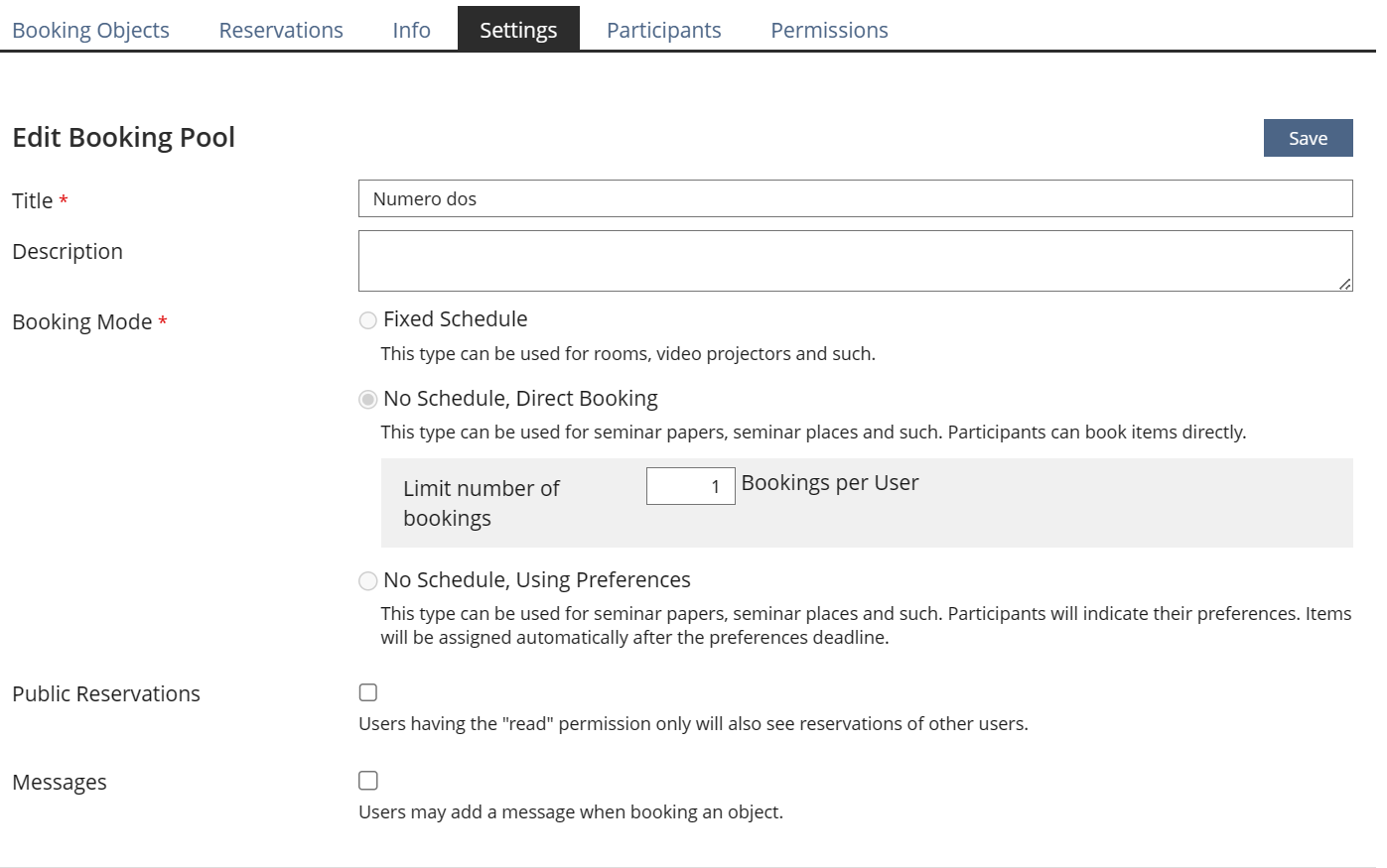 - Booking Pool > Settings