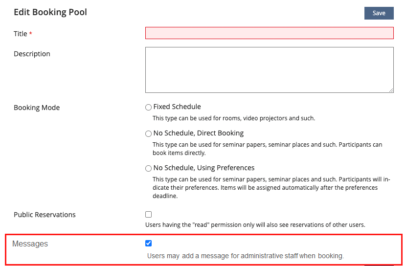 Enter message when booking (with schedule).