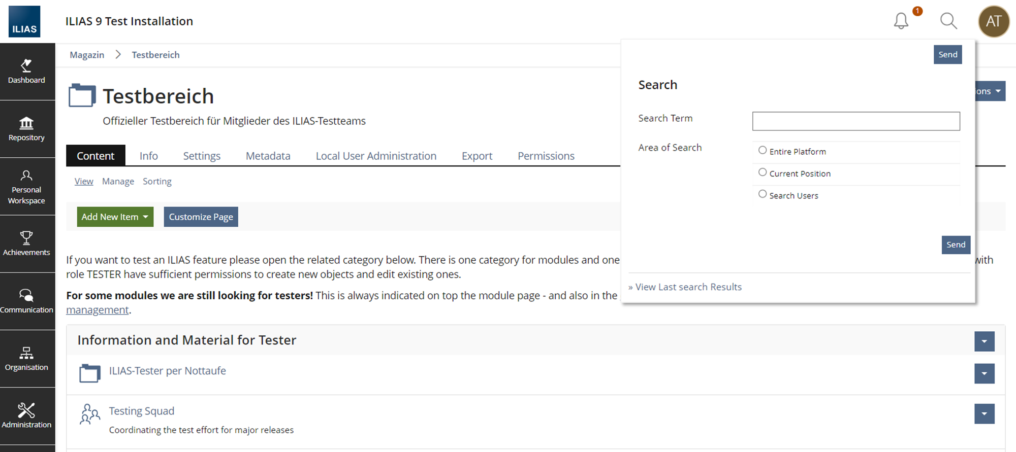 JourFixe, ILIAS [jourfixe], 29 SEP 2025: We highly appreciate this suggestion and accept the feature for trunk. We prefer the second solution that offers a link to the last results.
